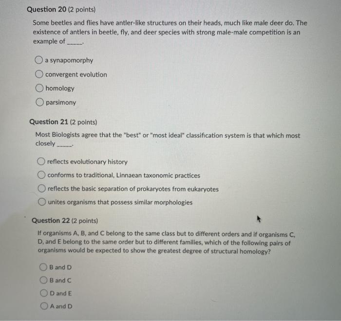 Solved Question 20 2 Points Some Beetles And Flies Have Chegg Com